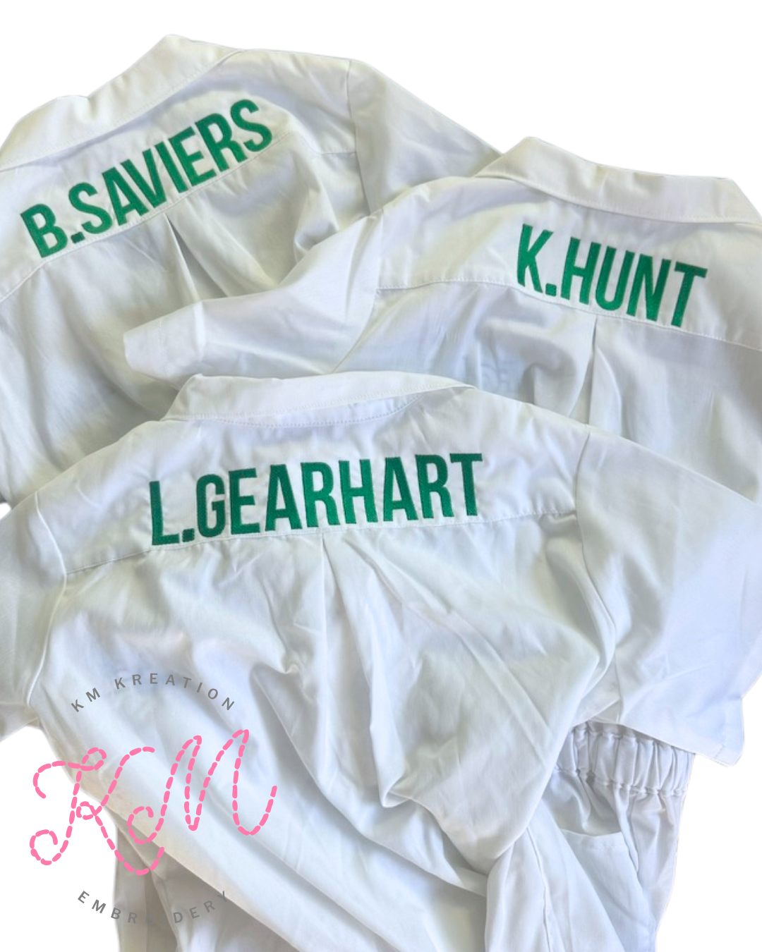 Welcome to KM Kreation Embroidery! My name is Kelly and I am so honored you are here! I am a Speech-Language Pathologist by degree, but taking a few years off to spend time with my children while they are young. My husband and I live in Fayetteville, Arkansas with our 2 boys. I started monogramming items for friends and family in 2014 and it has just continued to grow every year. I am so thankful for all of you for allowing me to dress your children and play a small role in your celebrations and life moments! Please do not hesitate to email or DM me if you have any questions or have any specific requests! This website is meant to streamline invoicing and shipping procedures, but not to decrease my interaction and communication with all of you!
