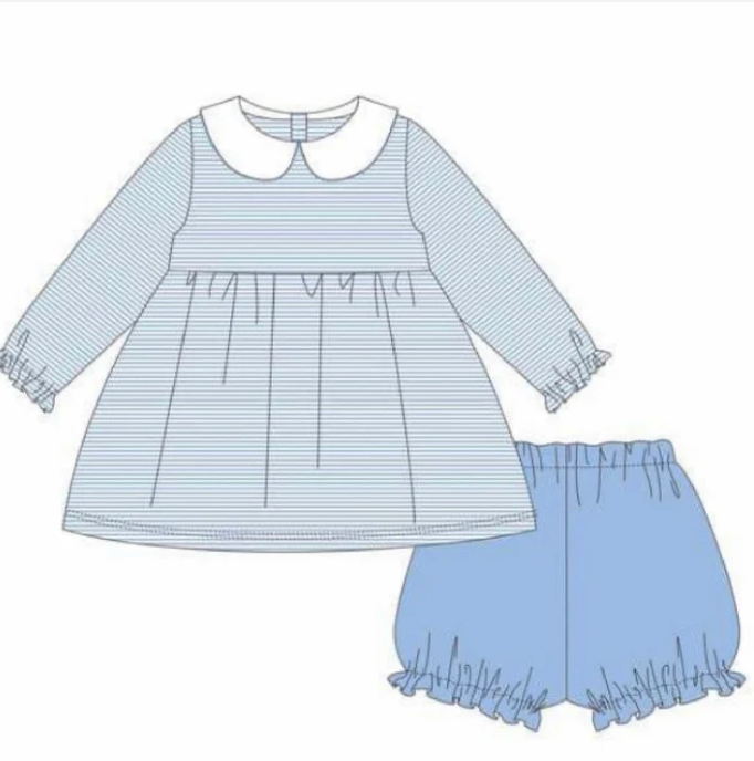 18M Cornflower Blue Charlotte Long Sleeve Bloomer Set