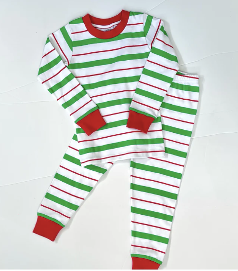 6Y Christmas Stripe Unisex Fitted 2-Piece Pajamas