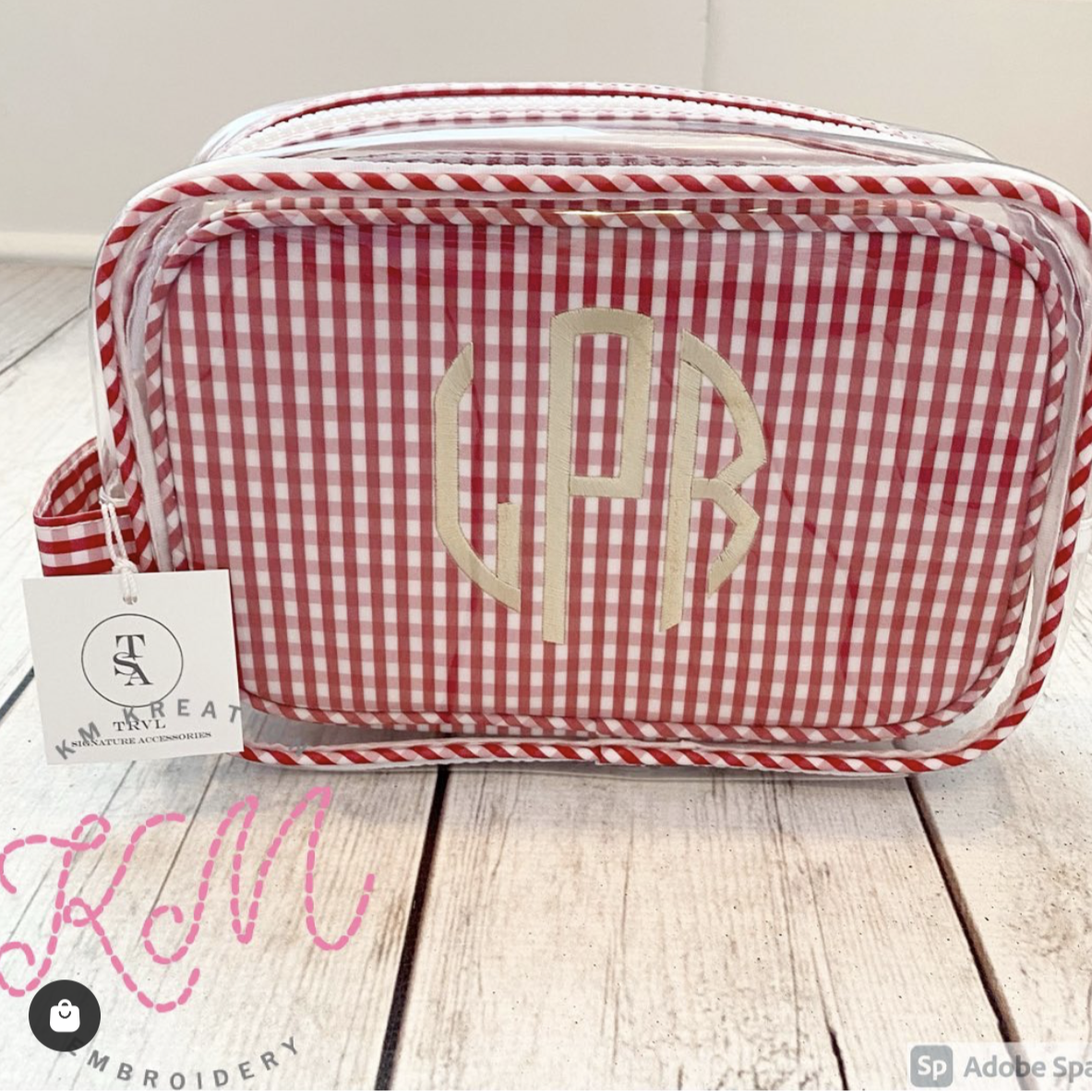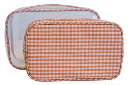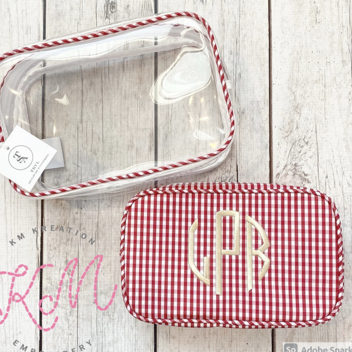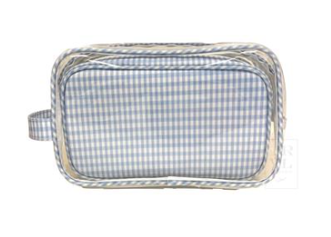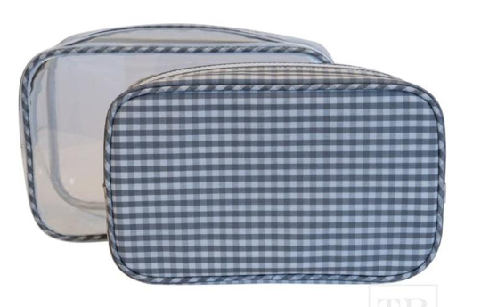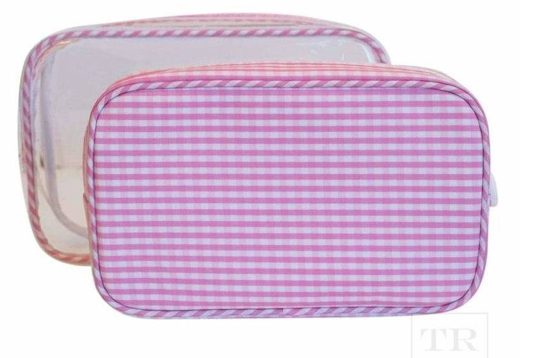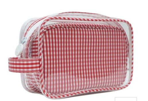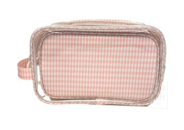 The clear outer bag holds the coated gingham inner bag to create the perfect set-