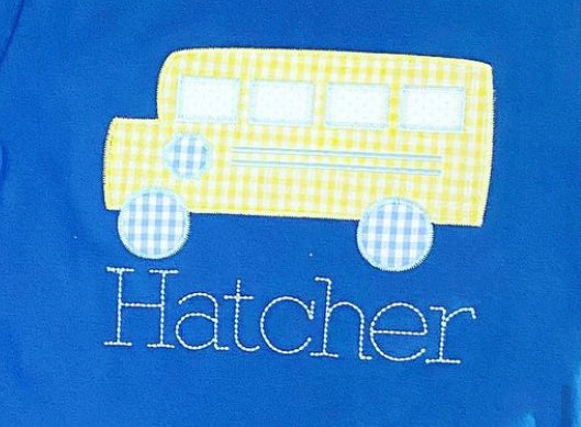 Blue Gingham School Bus Appliqué*Design Only*