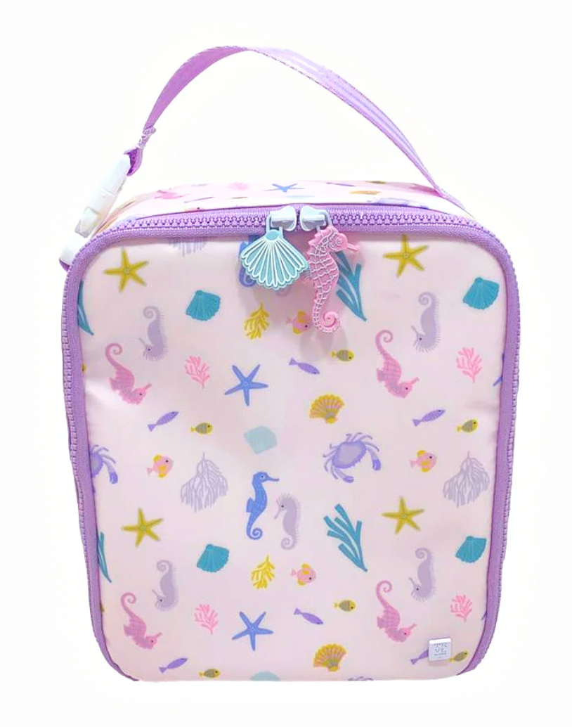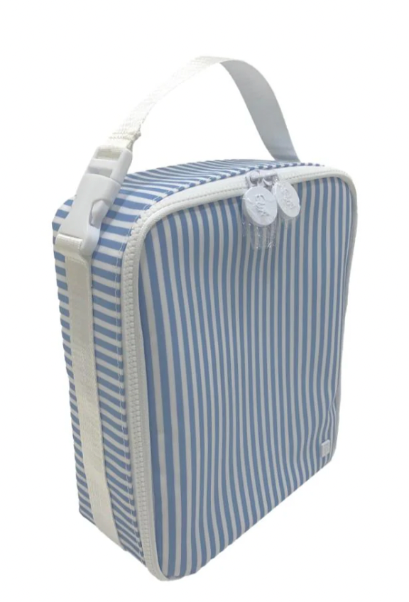 Easily Holds a full size bento box and has a slim fit to pack inside any backpack. Top Handle Buckle closure that can attach to a stroller or bag. Wipeable inside and out and machine washable.
