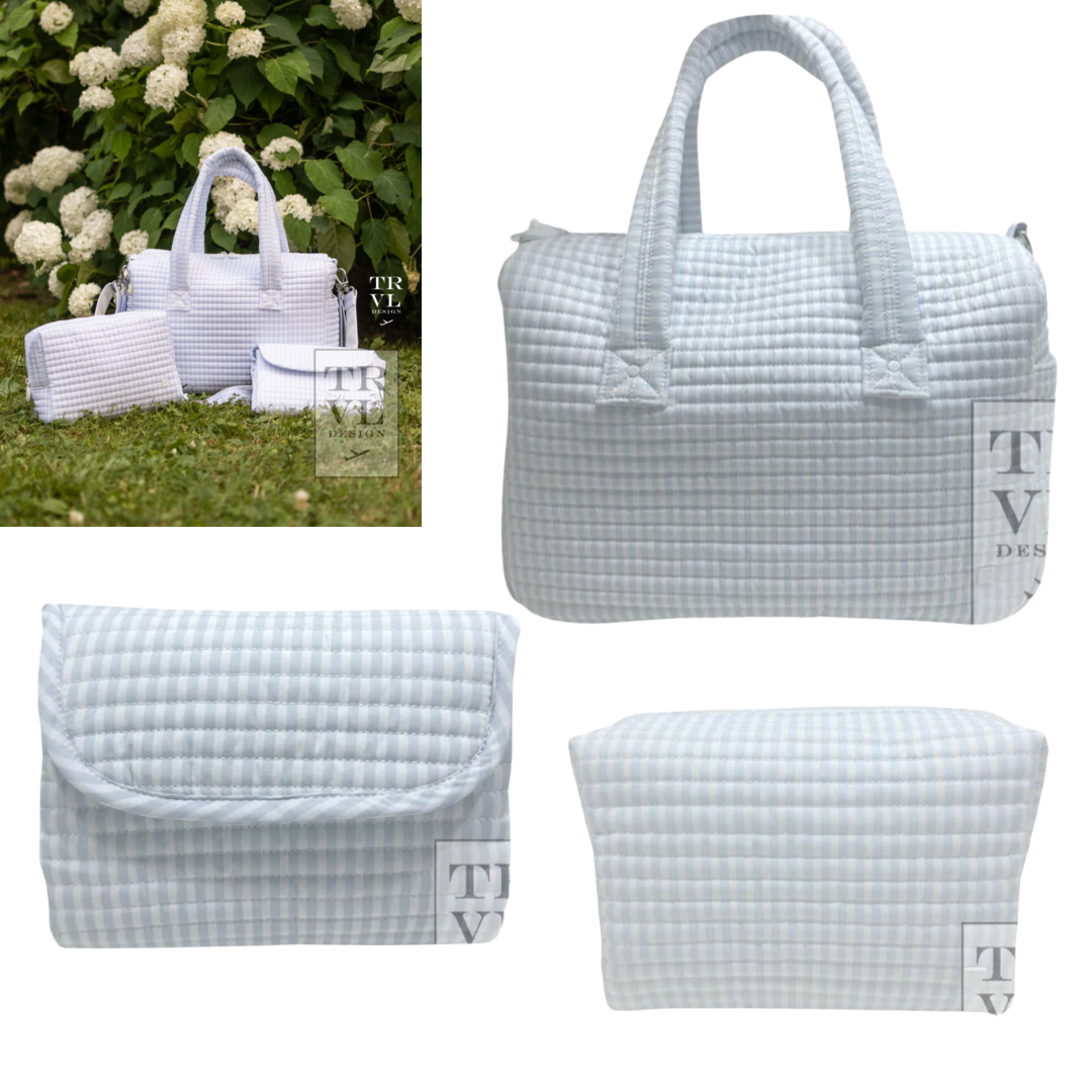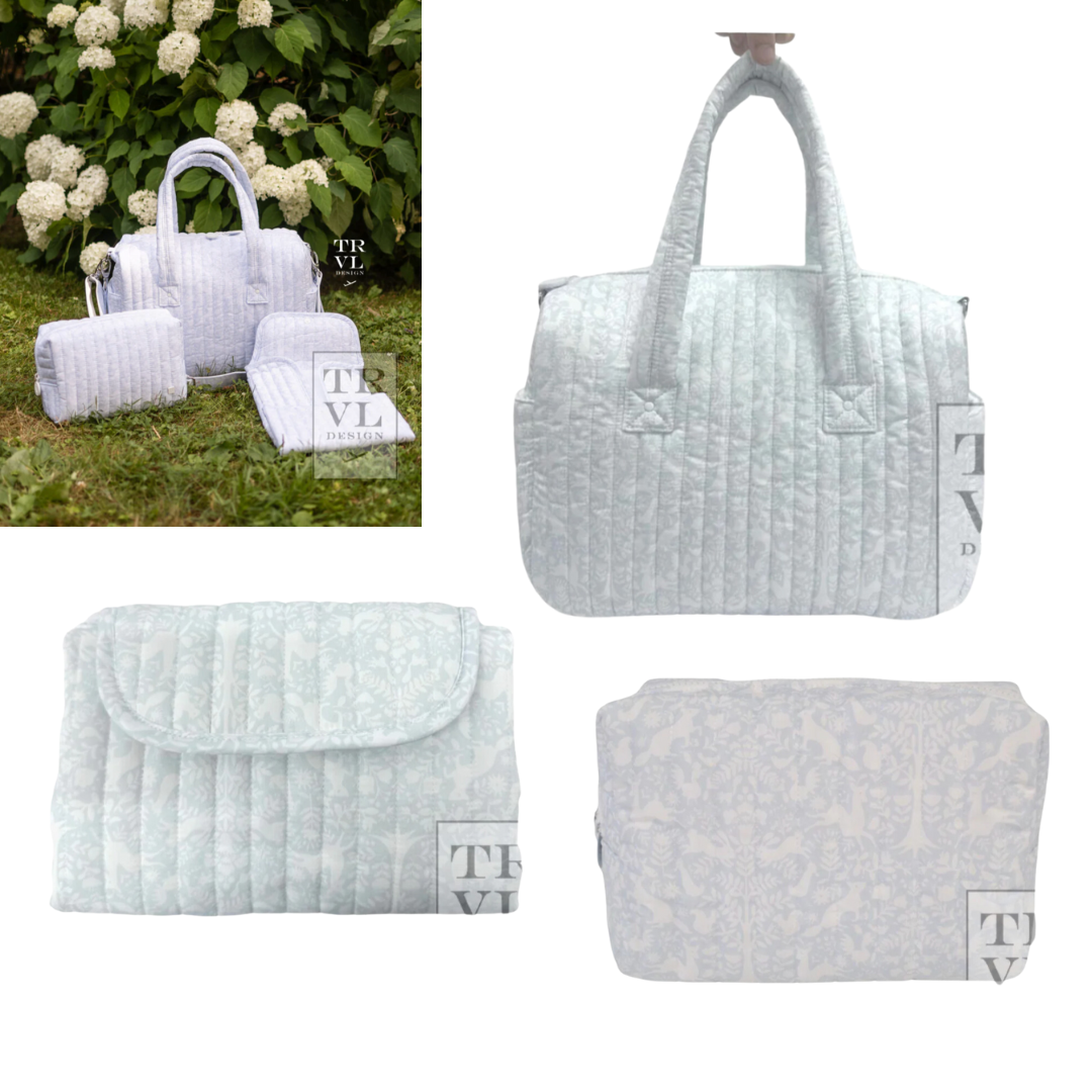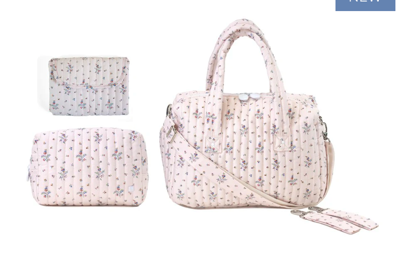 Bundle includes: Quilted Stroller Bag, Quilted Everyday Bag and Quilted Changing Mat.