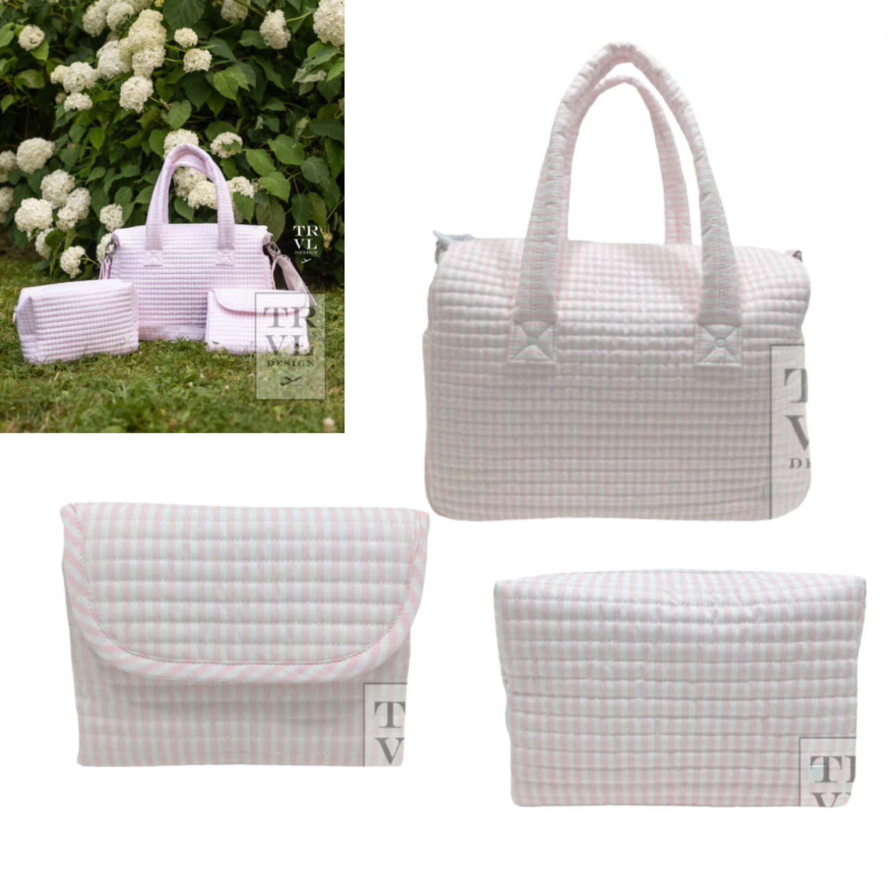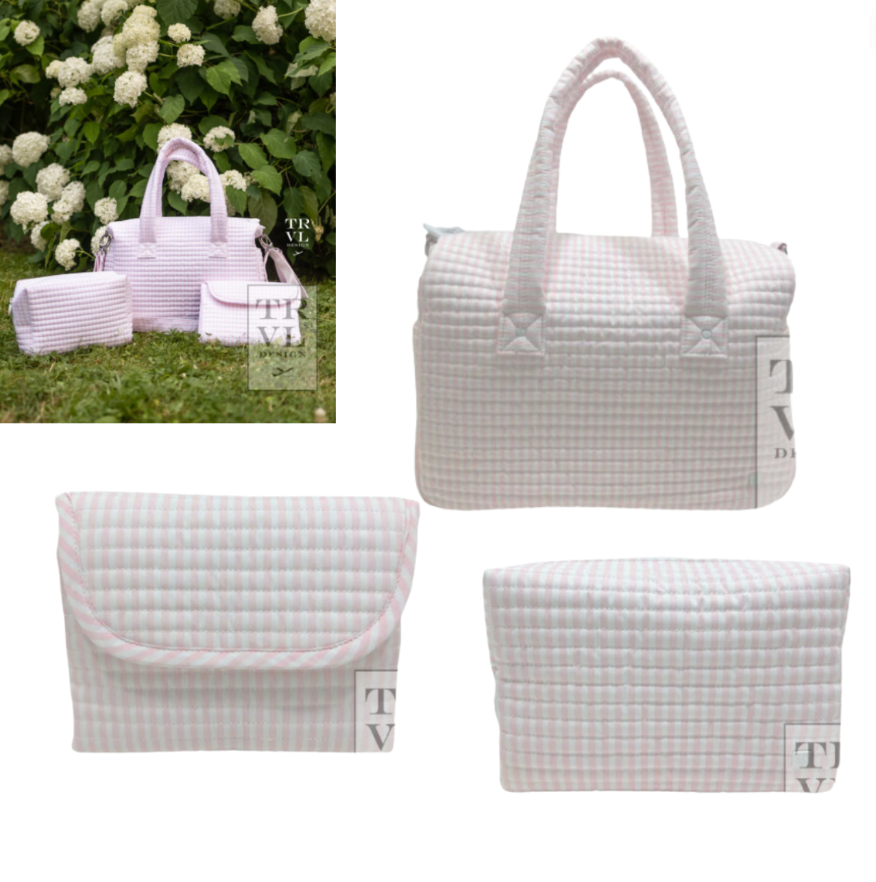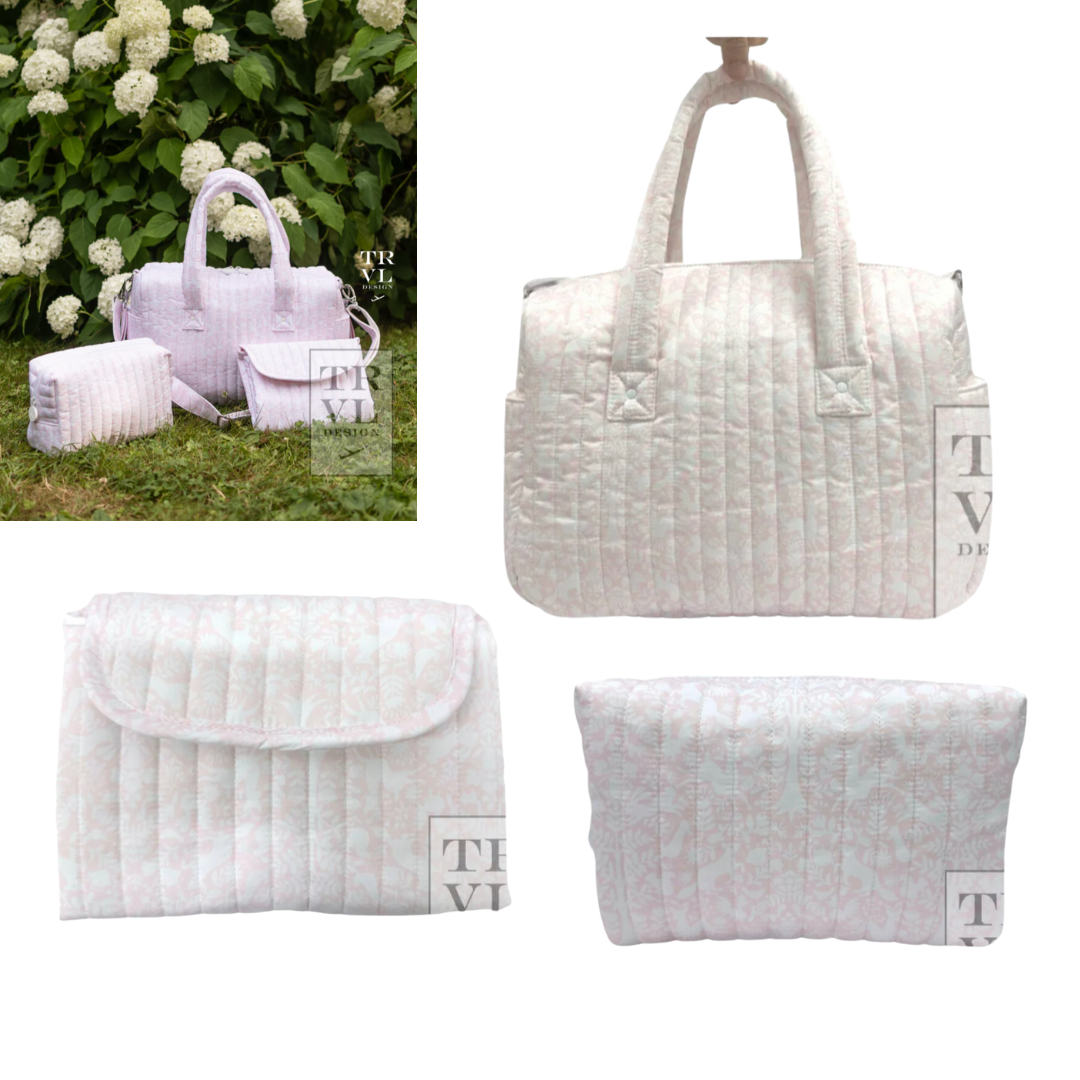 Bundle includes: Quilted Stroller Bag, Quilted Everyday Bag and Quilted Changing Mat.
